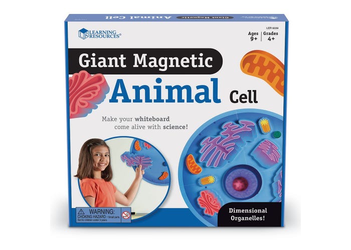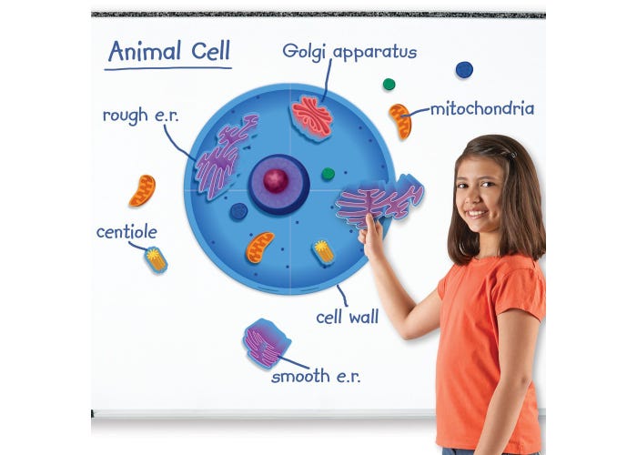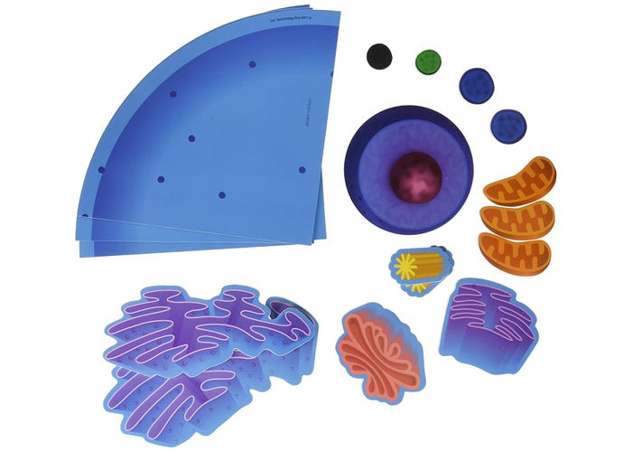 Incluye células animales de 4 piezas, organelos de 14 dimensiones y una guía de actividades con información básica sobre cada organelo y un diagrama reproducible.