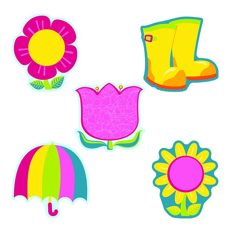 36 recortes surtidos (el más grande de 5.5 “x 5.75”, el más pequeño de 5.25 “x 5.25”) 6 de cada uno: margarita rosa, tulipán rosa, paraguas, margarita amarilla