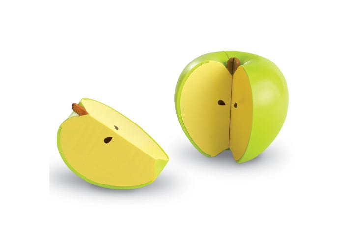Incluye guía de actividades y 10 piezas de plástico codificadas por colores con imanes integrados que permiten a los niños construir y desarmar manzanas.