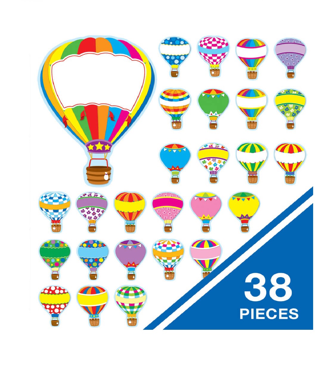 Incluye: un gran globo de aire caliente (16 ″ x 23 ″), una superposición de globo en blanco, 36 globos pequeños