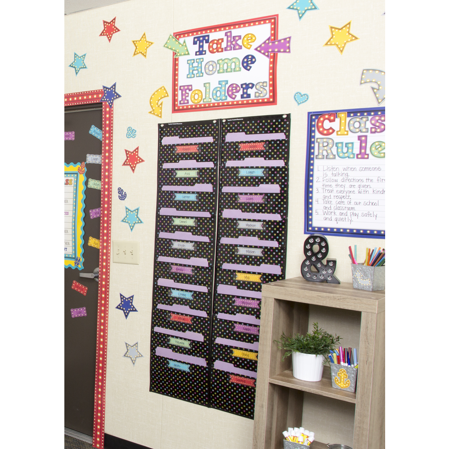 Estos gráficos de bolsillo livianos y duraderos cuentan con diseños coloridos y se cuelgan fácilmente de ojales metálicos resistentes. 10 bolsillos tamaño carpeta. Portaetiquetas transparentes. La superficie no porosa es fácil de limpiar y se puede limpiar o rociar con desinfectante para ayudar a prevenir la propagación de gérmenes. Mide 14″ x 58″.