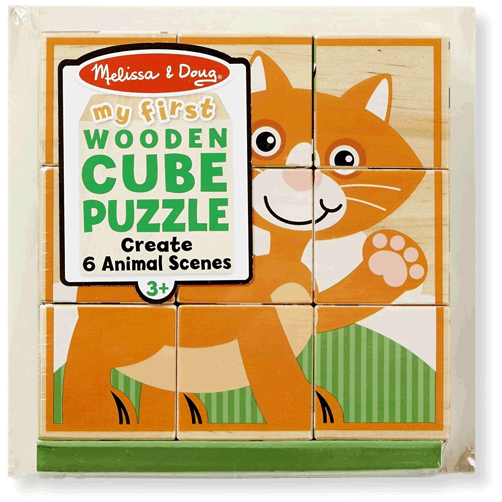 Incluye 9 piezas de rompecabezas en forma de cubo en una resistente bandeja de madera.