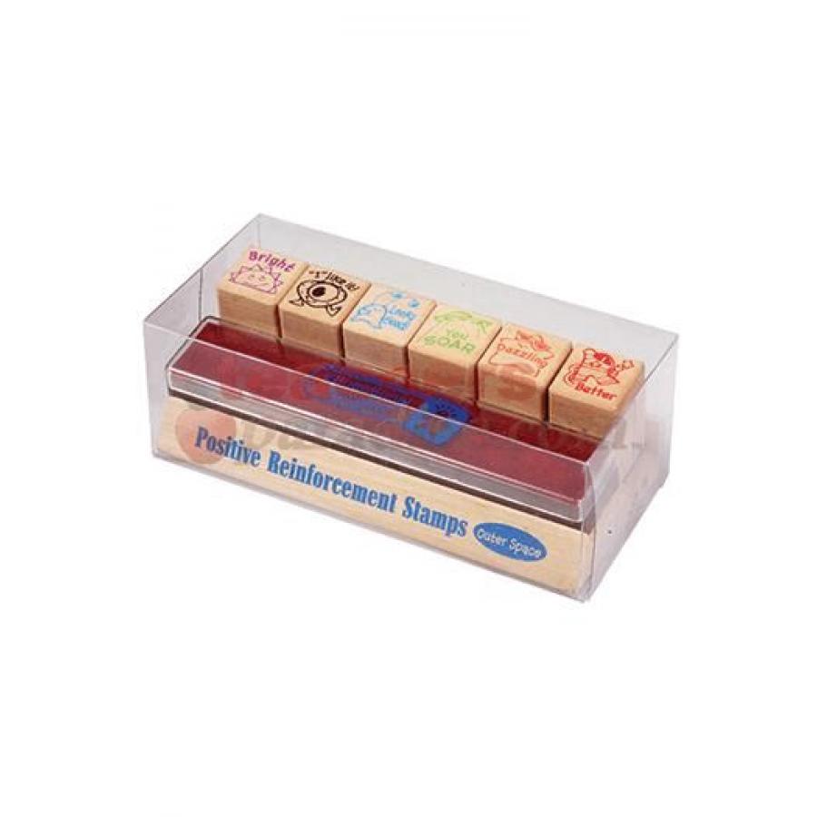 Los maestros ahora pueden usar palabras de aliento y mensajes divertidos para dar al trabajo de sus estudiantes un “sello de aprobación”. Cada juego cuenta con seis sellos de madera temáticos y una almohadilla de sello incorporada en un juego de escritorio de madera compacto y conveniente.