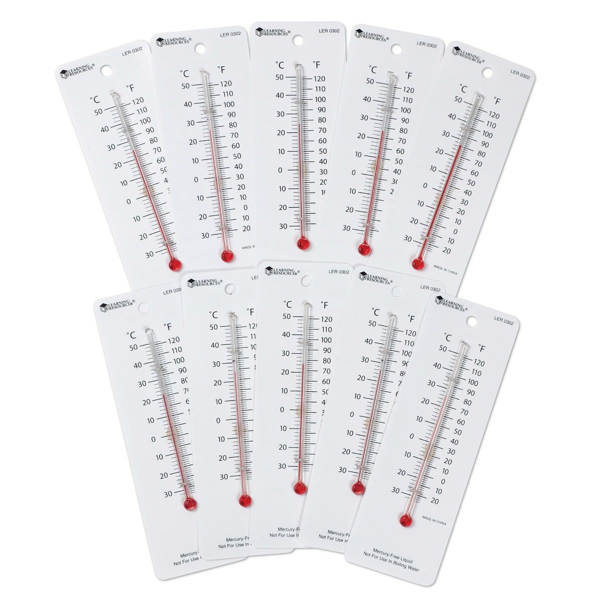 El termómetro de fácil lectura mide la temperatura en grados Fahrenheit y Celsius con precisión. Respaldo de plástico de 2 ‘x 6’.